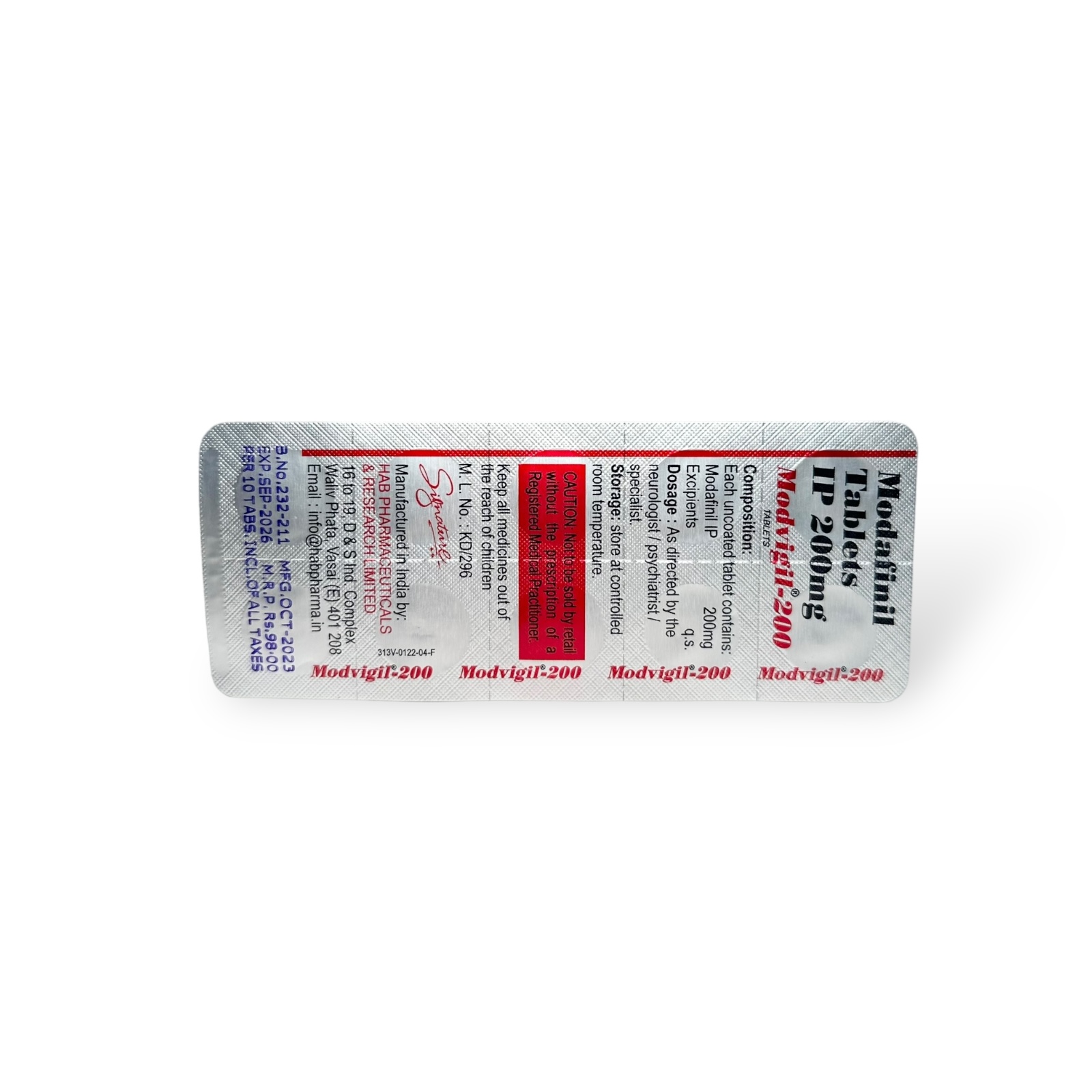 MODAFINIL 200MG X 10 | INDIA PHARMACEUTICAL GRADE